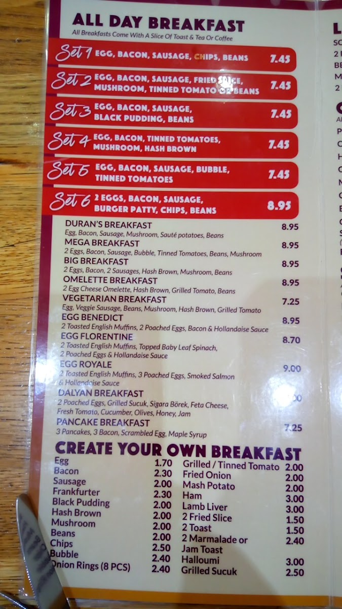 Duran's Cafe also offers a selection of refreshing cold drinks and indulgent desserts, including rich Chocolate Fudge Cake for £5.95. Reviewers rave about the friendly ambiance, exceptional service, and generous portions, making it a must-visit spot. Whether you’re treating yourself to a full English breakfast or a comforting shepherd’s pie, the inviting atmosphere and attentive staff, led by Chef Huseyin, ensure every visit is cherished. Experience the warmth and flavor that make Duran's Cafe a local favorite!